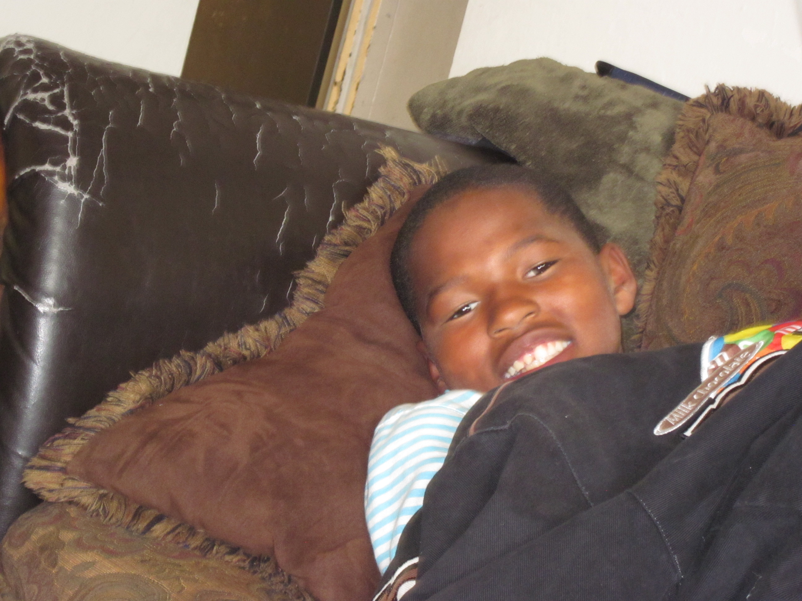 Before we went on to our last visit in another hospital we stopped to visit with some of our children. Maintaining loving presence with our children is a priority with us. “Then small children were brought to Jesus so he could lay hands on them and pray for them.The disciples began to scold the parents but Jesus said, let the children come to me and do not hinder them, the kindom of God belongs to such as these. And after laying hands on them,Jesus left that town” ” (Matt. 19: 13-15). Again, we see and feel the power of the laying on of hands and prayer. The triplets have just had their fifth birthday and were excited to see us. Keion was resting after school but his smile made our day!