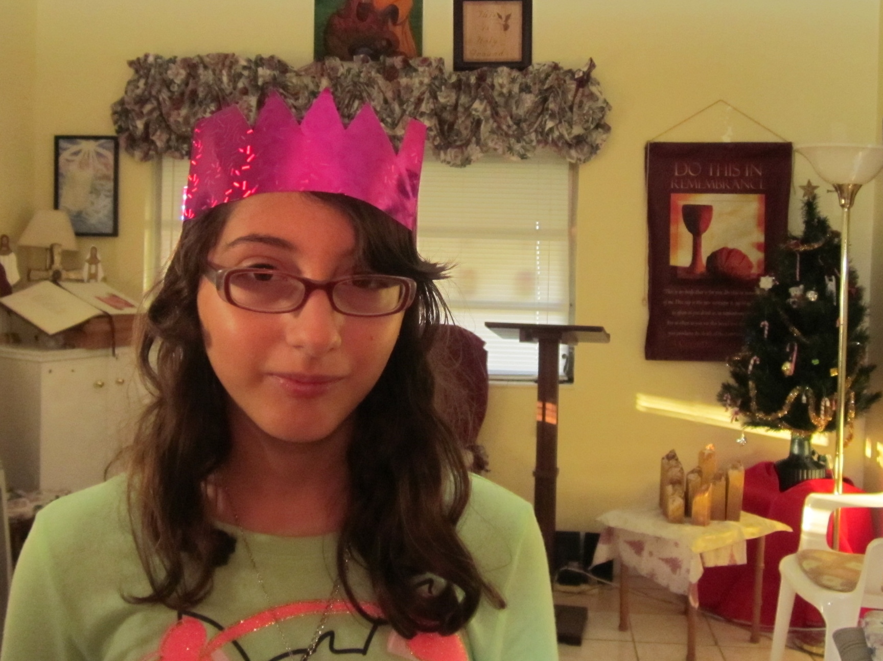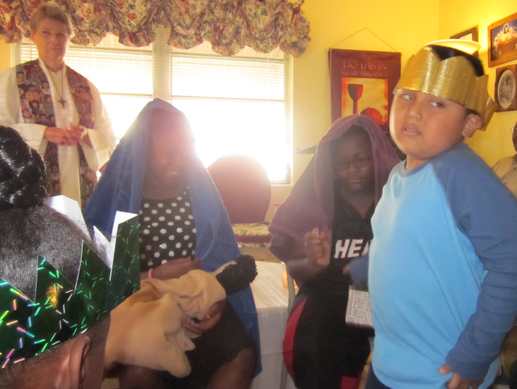 Our Mary, Jakeriya Maybin 11, tells us the story of how the wise people from far away brought baby Jesus very special gifts because they knew he would be King of our hearts and bring love to the world. Joseph, Jakein John Maybin listens.