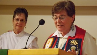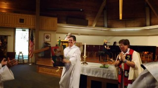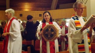 ARCWP Bishop Bridget Mary Meehan presided. Our co-pastor Judy Beaumont assisted her with the altar book. St Andrew UCC Church on Beneva Road in Sarasota was nearly filled to capacity. The children of our Good Shepherd Church in Fort Myers led the procession with drumming, dancing with liturgical dancer Sheila Carey, and carrying the Book and candles and, later, the gifts. Keeron Jones was the drummer, Keeondra Terrell carried the Gospel Book, Natasha and Jolinda Terrell carried the candles and Jakeriya Maybin and Keion Lewis joined in the liturgical dancing with a tambourine and bells. Our Efe Jane Cudjoe, a Junior at Brown University read the first reading in English and Theresa Rodriguez read it in Spanish. Our Henry (Hank) Tessandori led the Psalm in English while we sang Alabare as the response. Elizabeth Lucey read the Epistle in English and Roman Rodriguez read in Spanish. Deacon Mary Weber read the Gospel, the Magnificat, and Olga Lucia Alvarez proclaimed it in Spanish. Bridget Mary’s spirited homily is below. I was pleased to be the MC for this Ordination that was conducted in Spanish and English. Univision TV will air an hour long special on Marina Teresa and Olga Lucia Alvarez and possibly our other priest in Bogota, Colombia, Martha Aida Soto Bernal on February 9,2014. Caracol TV in Colombia also covered this as did NBC and ABC News. The beautiful pictures below are courtesy of Wanda Russell, ARCWP Priest.