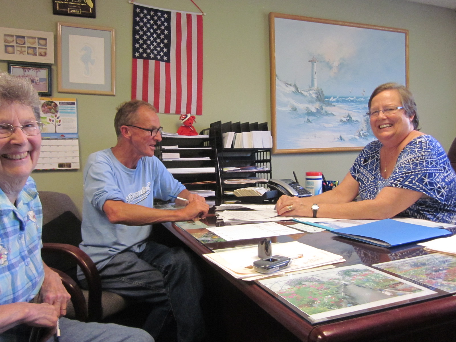 This is Tom signing his lease with the Property Manager Margaret Sousa and Pastor Judy Beaumont