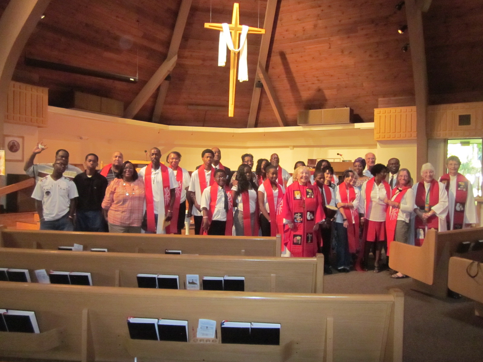Pastor Phil Garrison welcomed the Confirmands and all present to the St. Andrew United Church of Christ that hosted us. Dorothy Irvin, theologian and Archaeologist who has unearthed many proofs of women’s clerical roles in the first twelve Centuries was also present. She commented that she was raised in Belle Grade, Florida and grew up in segregation as all of the older Good Shepherd Confirmands did, and witnessing our loving interracial and inter cultural celebration was especially meaningful to her. Truly here in this sacred moment, young and old, black and white, men and women, well to do and poor, American born and people of other lands and cultures joined together as a discipleship of equals in the Body of Christ. Thanks be to God!