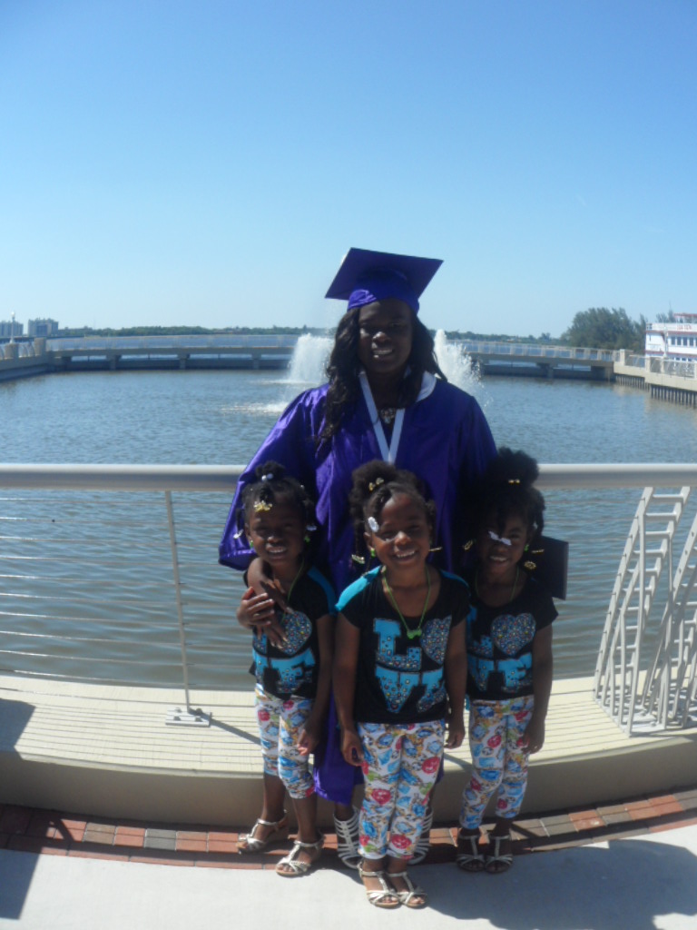 This is our High School Graduate, Natasha Terrell who was graduated from Cypress Lake High School on 5/17/14. Natasha achieved almost a 4 point average in her last year and over a 3 point overall. She is now accepted into Florida Gulf Coast University and will begin there in August of 2014. She is eagerly looking forward to her college studies and hopes to get a BS in Nursing and become a neonatal nurse someday. She says that her hope is for a career where she “can do her part to make things better”. She is an inspiration to her family and peers. Whatever her career choices may be we know that she will do well and give her best to her studies and her profession. Natasha is also working part time as a cashier at McDonalds to help with her expenses. While she will live in the dorm so she has plenty of time to study she will still be able to join us at Good Shepherd on Sundays.