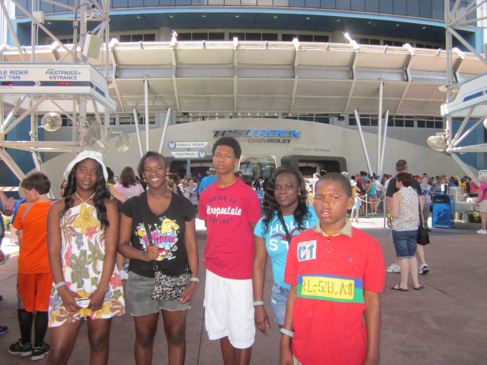 The first very special trip was for the teenage class plus one special needs 12 year old. It was a reward for excellent Sunday School attendance and academic accomplishments. We celebrated our High School Senior, Natasha Terrell who was graduated in May and Keion Lewis, age 12, who made wonderful success in reading and was promoted to Middle School. Five young people attended this trip ages 12-18. It was the first trip to Disney for Keion and his 16 year old brother Keeron.