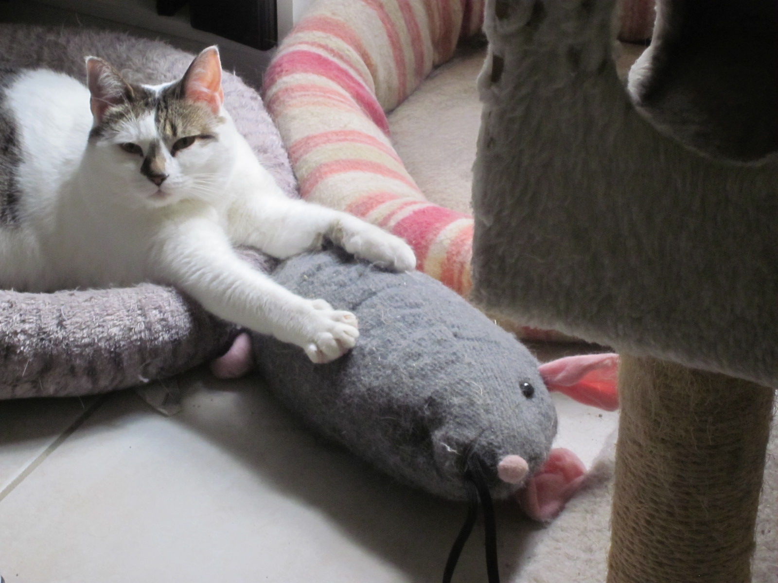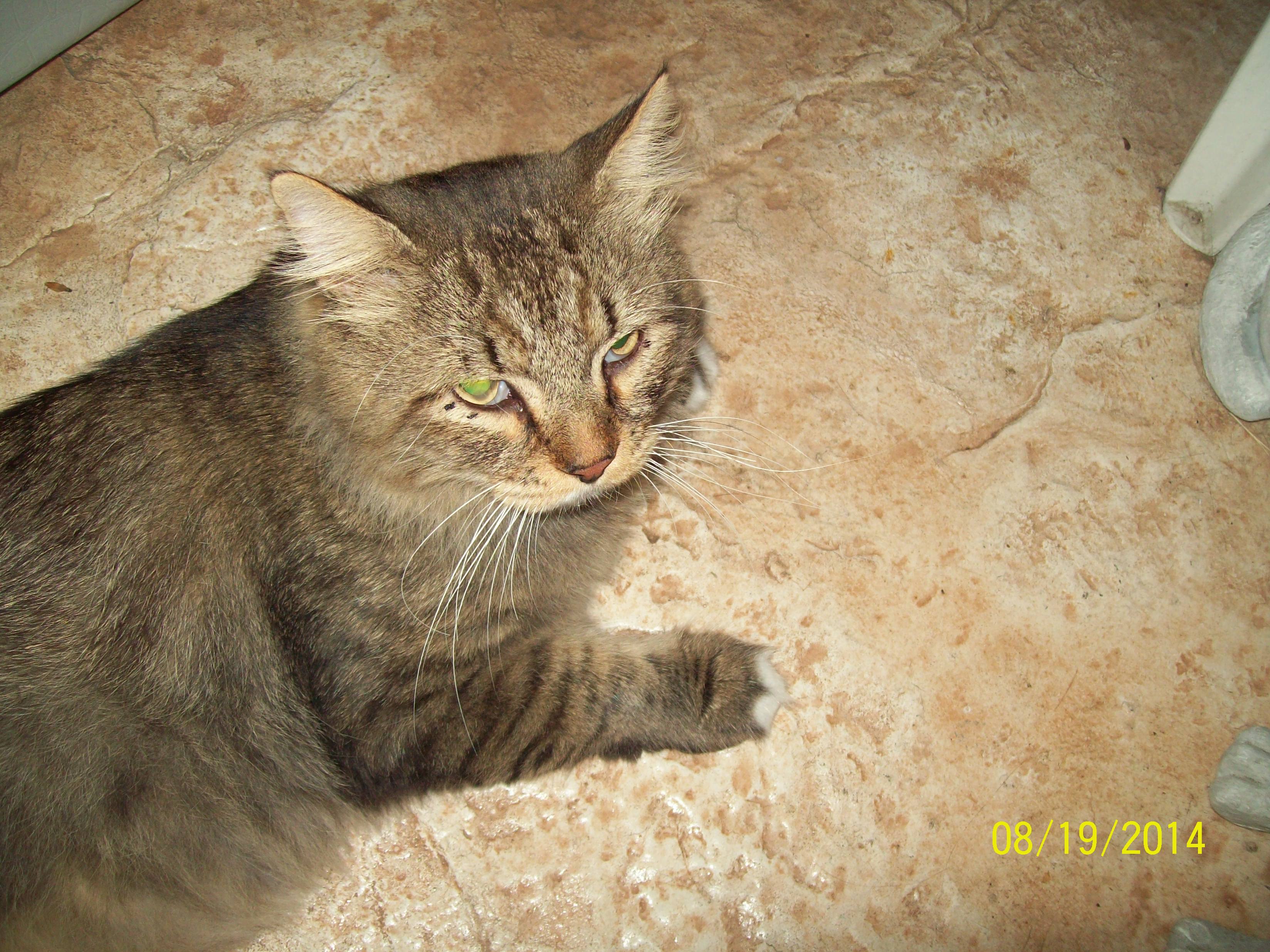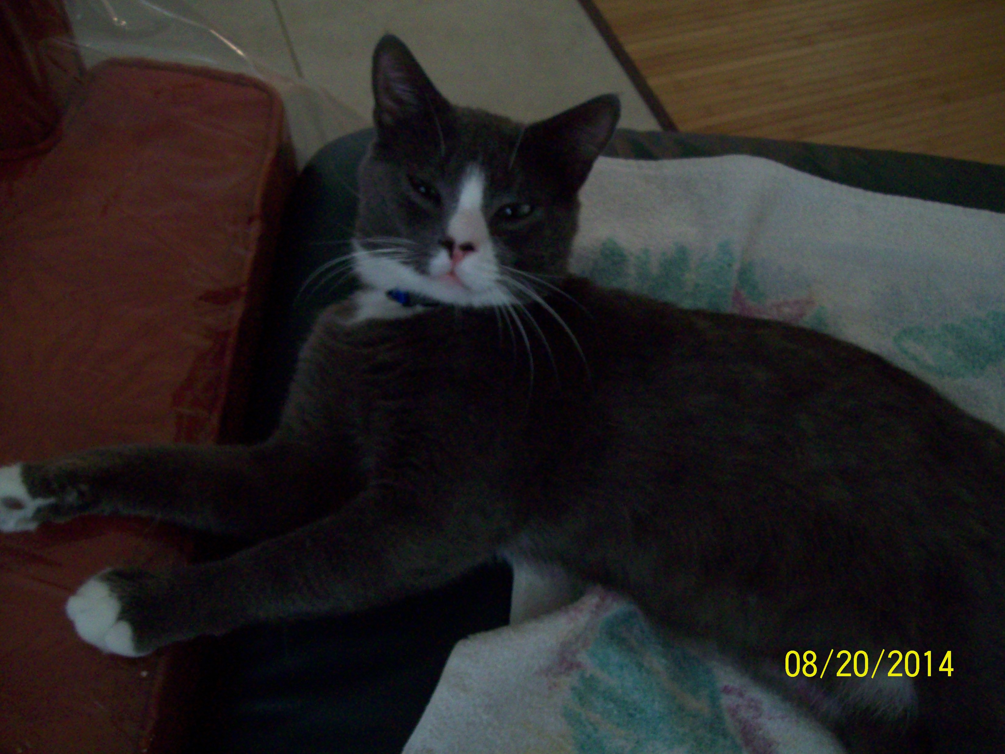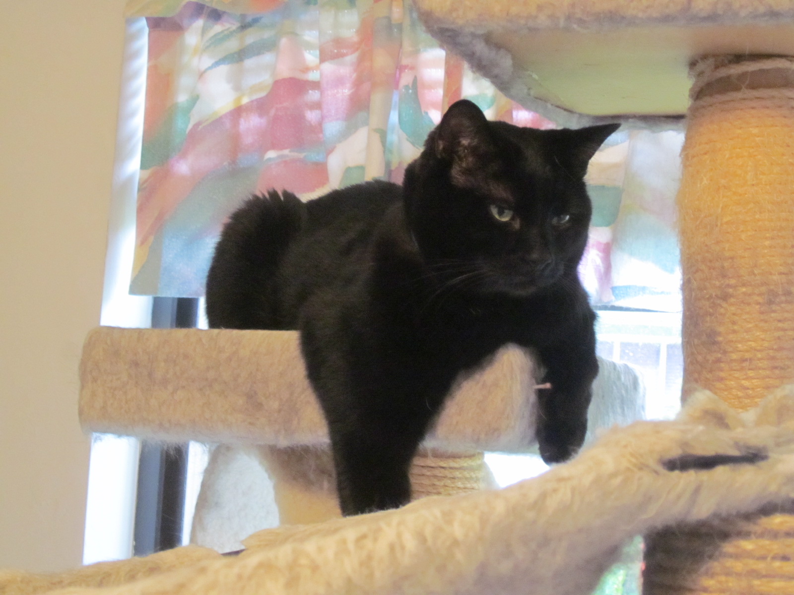 These are two of our most recent “rescues”-Potsy(Peter Potter) and Velvet Velcro named because he has soft as velvet fur and sticks to us /Velly. Potsy was so scared when he came in that he had to be carried out of the bathroom where he stayed for a long while initially in a carrier to get some air and sunshine. Both are great cats who also have Feline AIDS but relate very well to our other kittys.