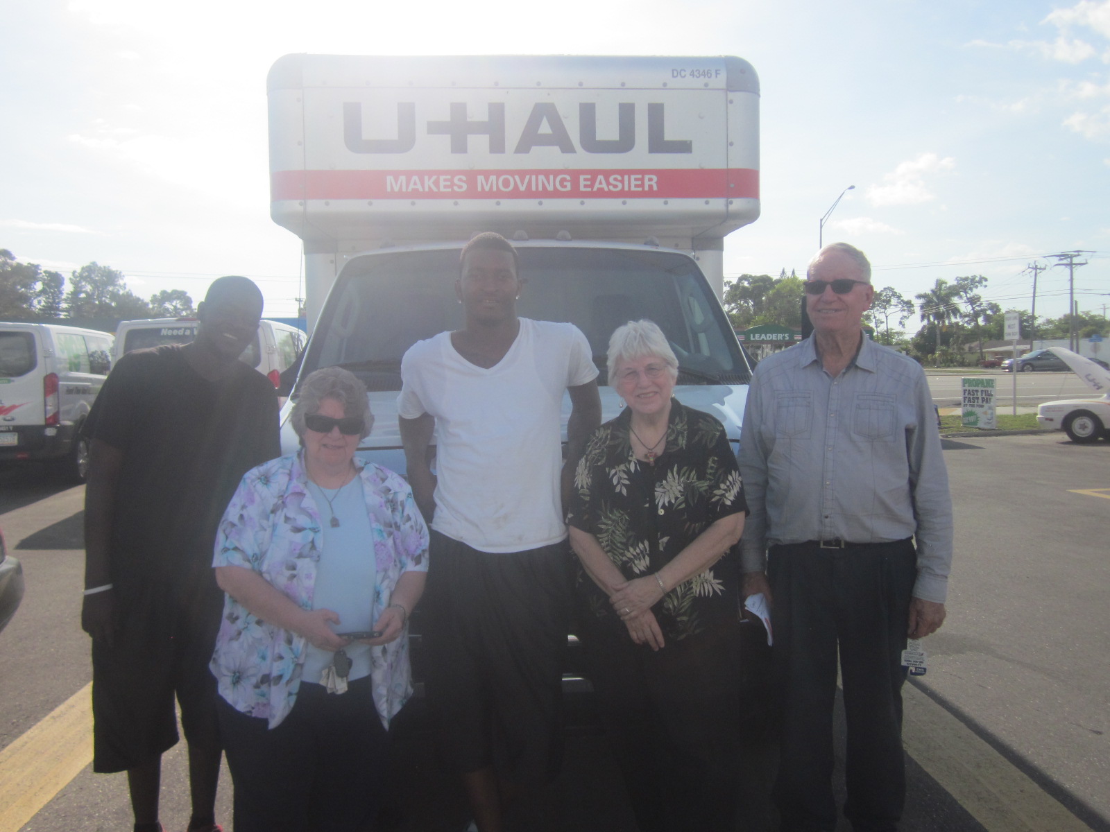 When we first brought our outdoor (in the local park) feeding and worship ministry inside to the house we bought and converted to both a church and a homeless housing facility in 2008 we included neighborhood residents and a range of others from varied backgrounds in one congregation. Early on, as I met with the teens in Sunday School after church they thought it perfectly acceptable to laugh about the smells and dress and behaviors of some of the homeless members. They soon learned that it was fine to share feelings about this with me or in class, but it was not acceptable to ridicule. For ridicule was their first response to people who looked unwashed and may be loud or different. Now our young people can be called upon to assist when we move homeless or mentally or physically ill people into housing. This is two of our young adults. Rashawn and Quayschaun with RC Pastor Miriam from the Palm Coast and her generous helper David as we all moved an elderly and ill woman into subsidized Senior Housing from the East Coast to our West Coast of Florida.
