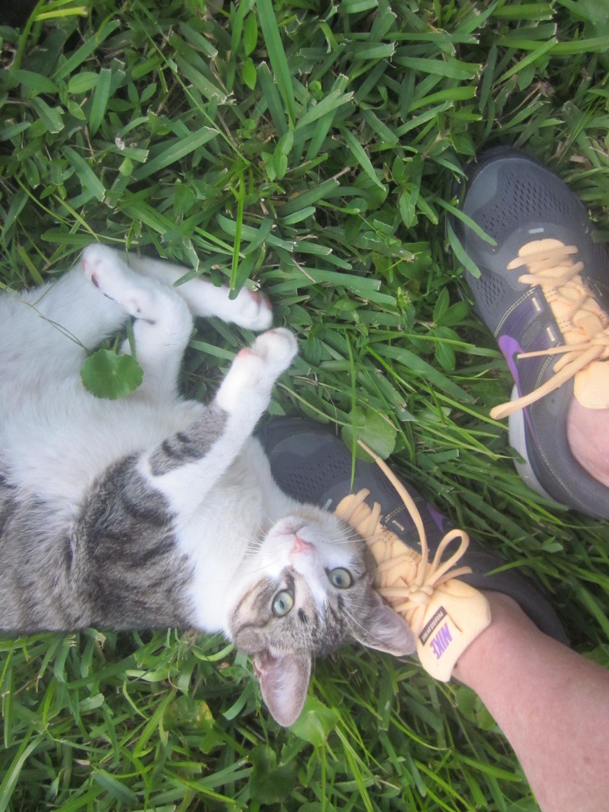 At present we have two more kittys in need of a home. One, a beautiful all black neutered male cat about a year old will be evicted in July when his caretakers move North. They cannot take him. And, one is holding on to my foot and hoping i can take him in. But there is no room so he will be a visitor until a home comes forward. If you have love and a little space-maybe its your home?