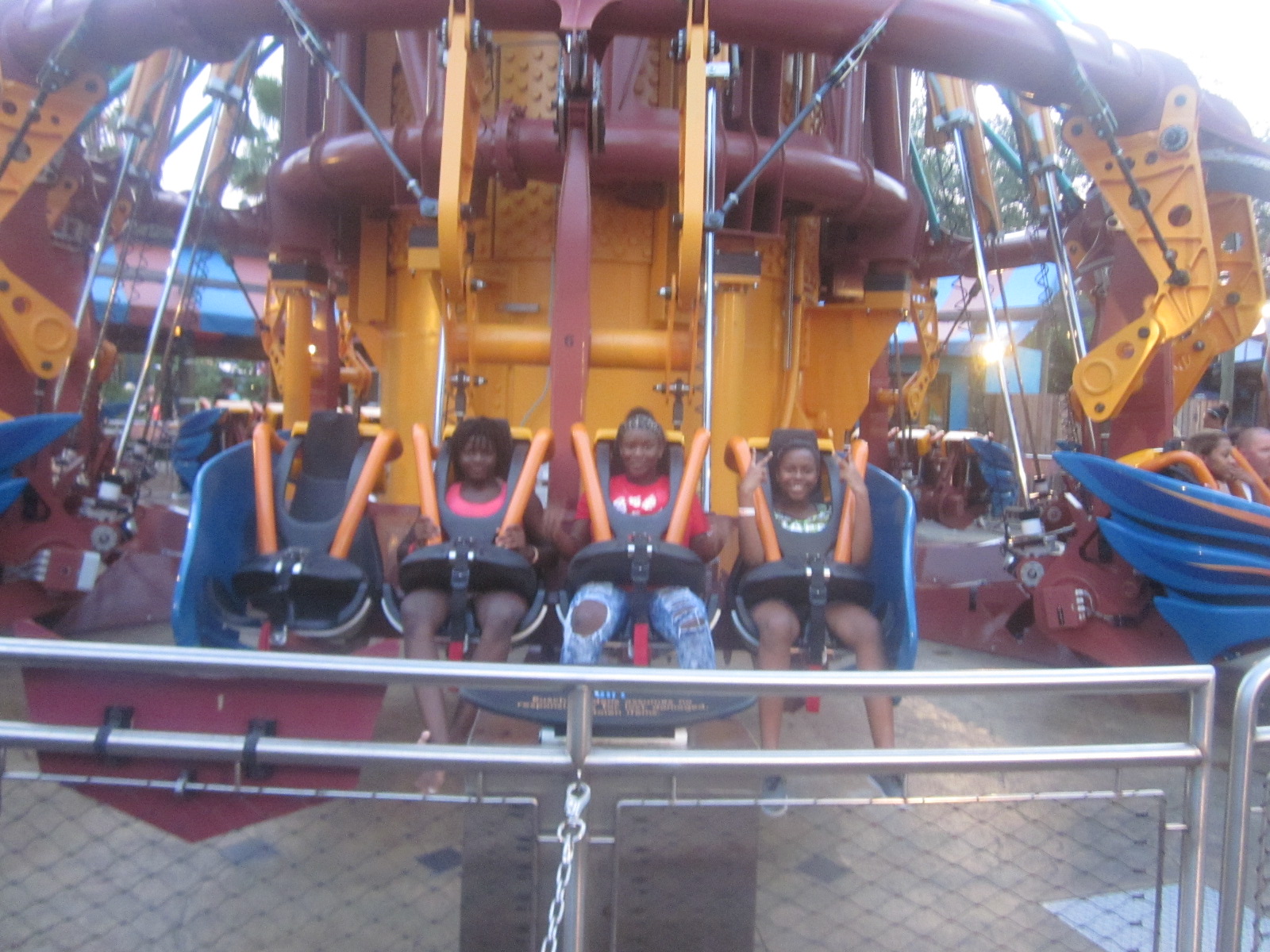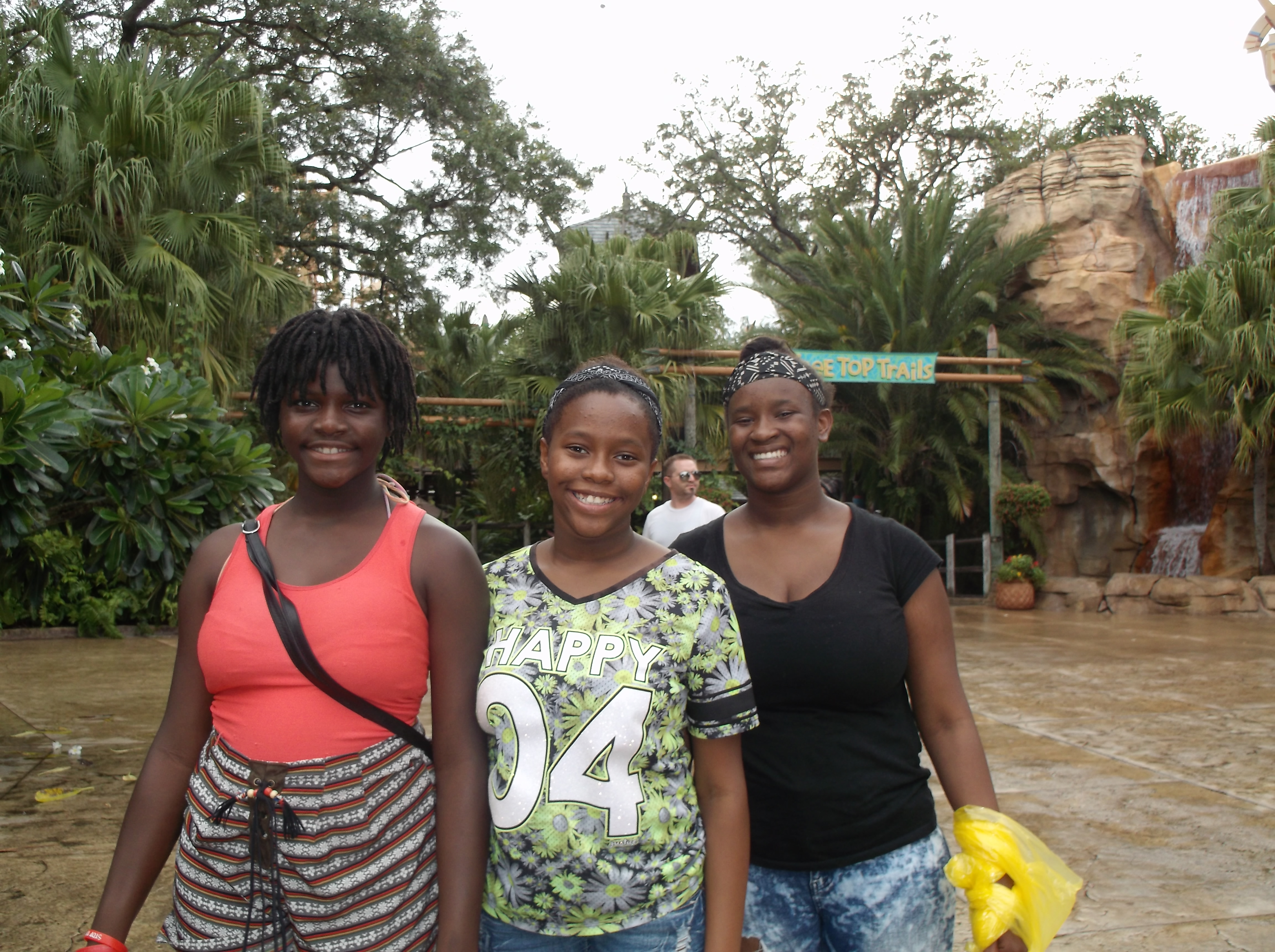 The girls loved the rides and courageously went on almost every one. The weather was lightly raining on and off the whole time and that broke the heat and also cooled us off. Pastor Judy Beaumont and I were thankful for the rain. But Pastor Judy B. went a big step farther and cooled off on the Congo River Rapids with the girls. This is a river raft ride with steep rapids that result in a thorough soaking. The girls loved it that she enjoyed this ride with them. They wore ponchos which helped a bit, while Miss Efe and Pastor JudyB. did not have a dry spot on them. The Jumbo Dryer helped a little.