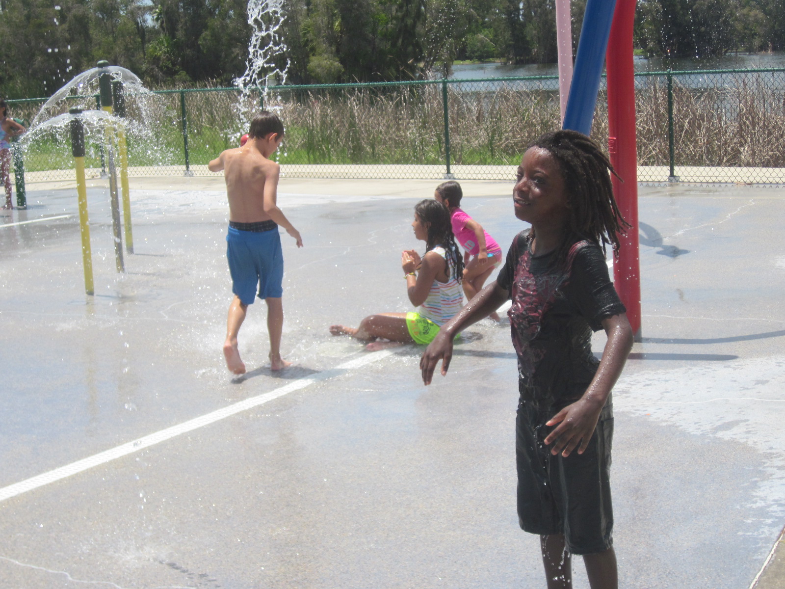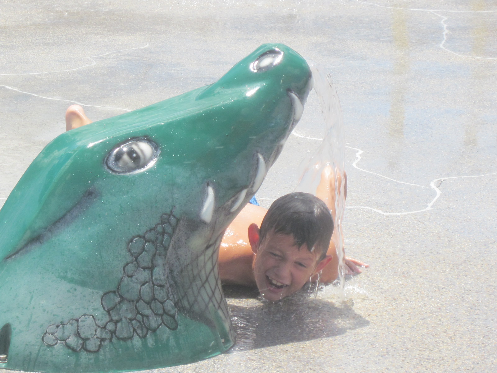 There is nothing like running through fountains of water on a hot day. And the very best way to do it is with a friend.   Owen and Jon are full of joy as they enjoy the water park at Lakes Park and also enjoy their friendship.