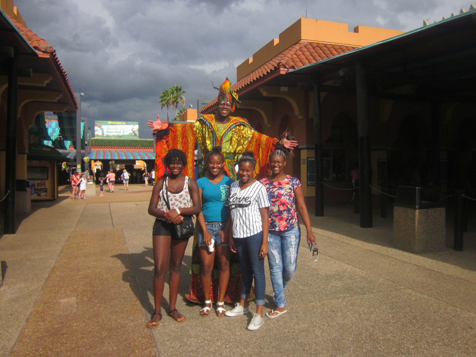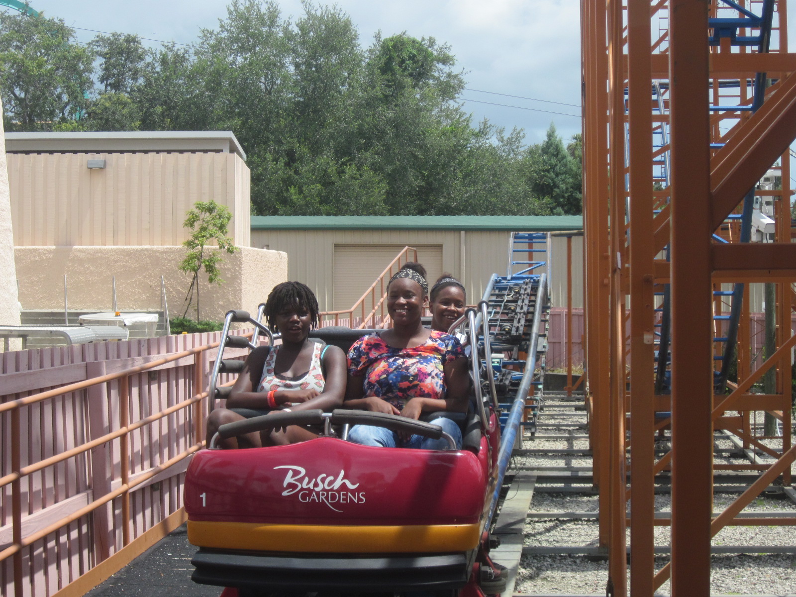 DSCF0462 Elizabeth, Jolinda, Jakeriya, Keeondra and our Youth Minister, Efe Cudjoe, as we arrive at our destiny for two days: Busch Gardens in Tampa.