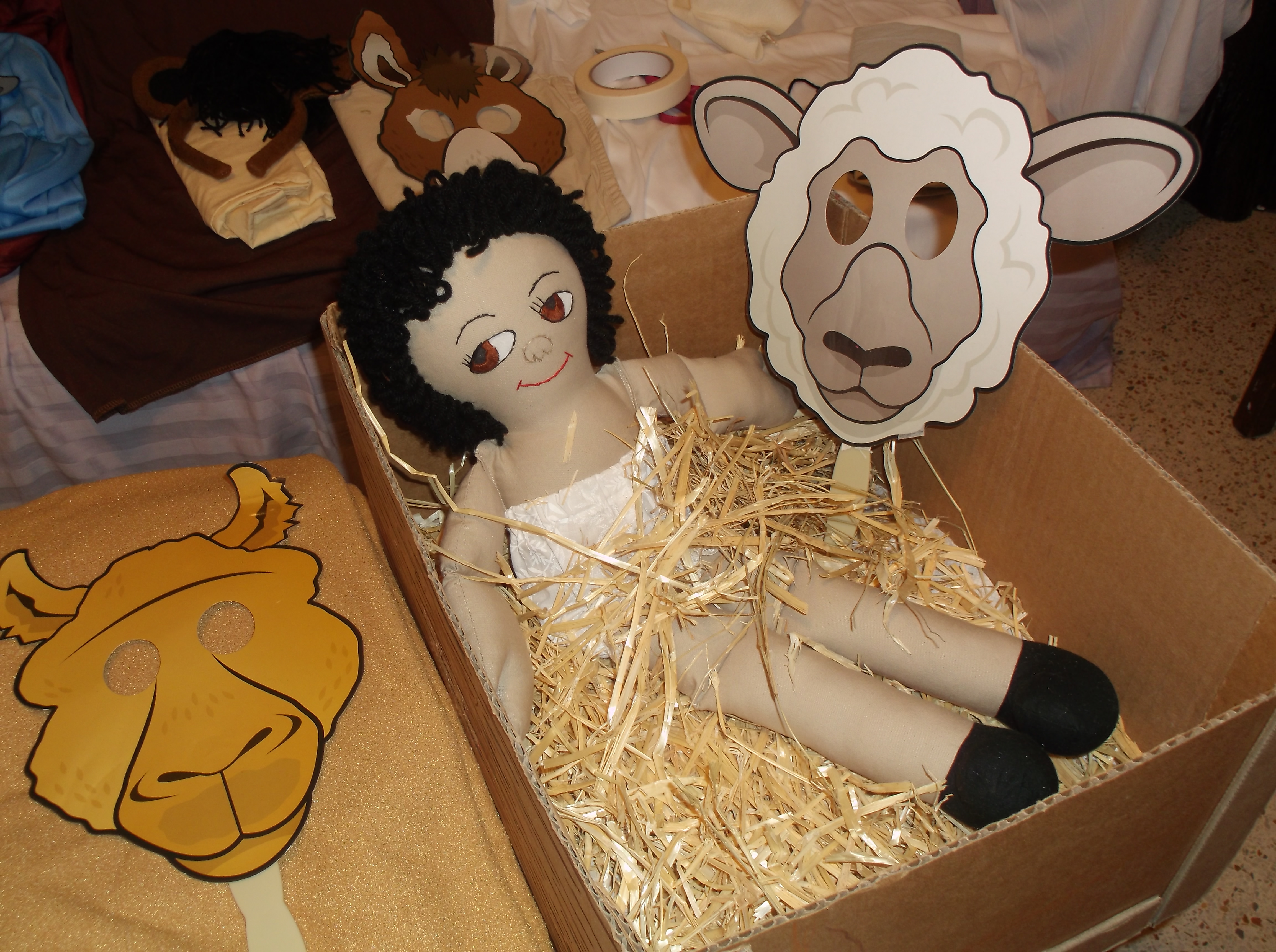 The angel speaks to Joseph too, and he takes Mary for his wife. They make a big trip to Bethlehem and have to sleep in a stable where Mary gives birth to the baby Jesus. Several in the audience also had animal parts.