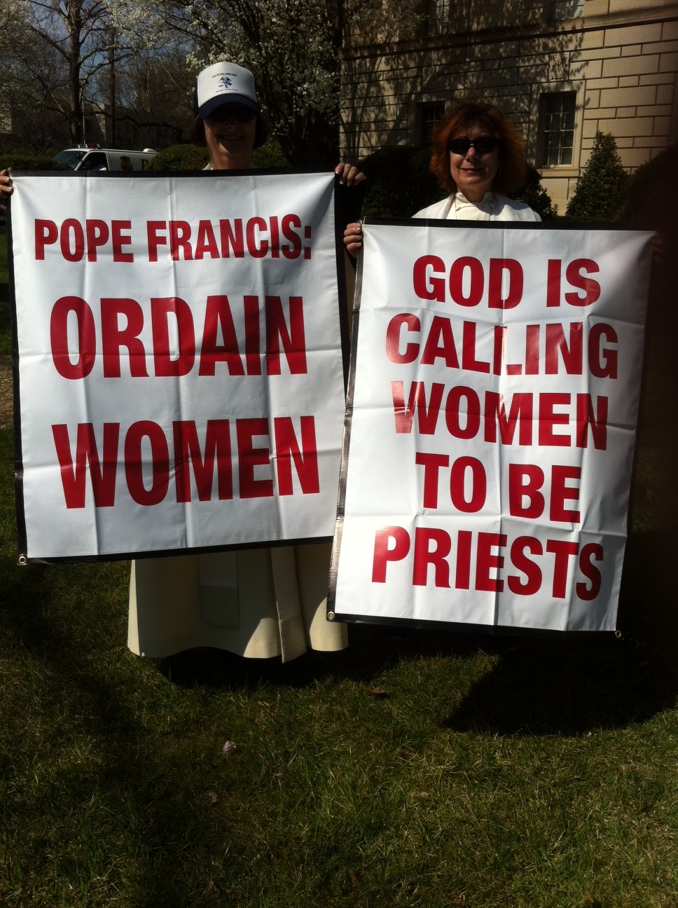 We are here today to call upon Pope Francis and the Catholic Church to ordain women and start treating LGBT people as equals.”
