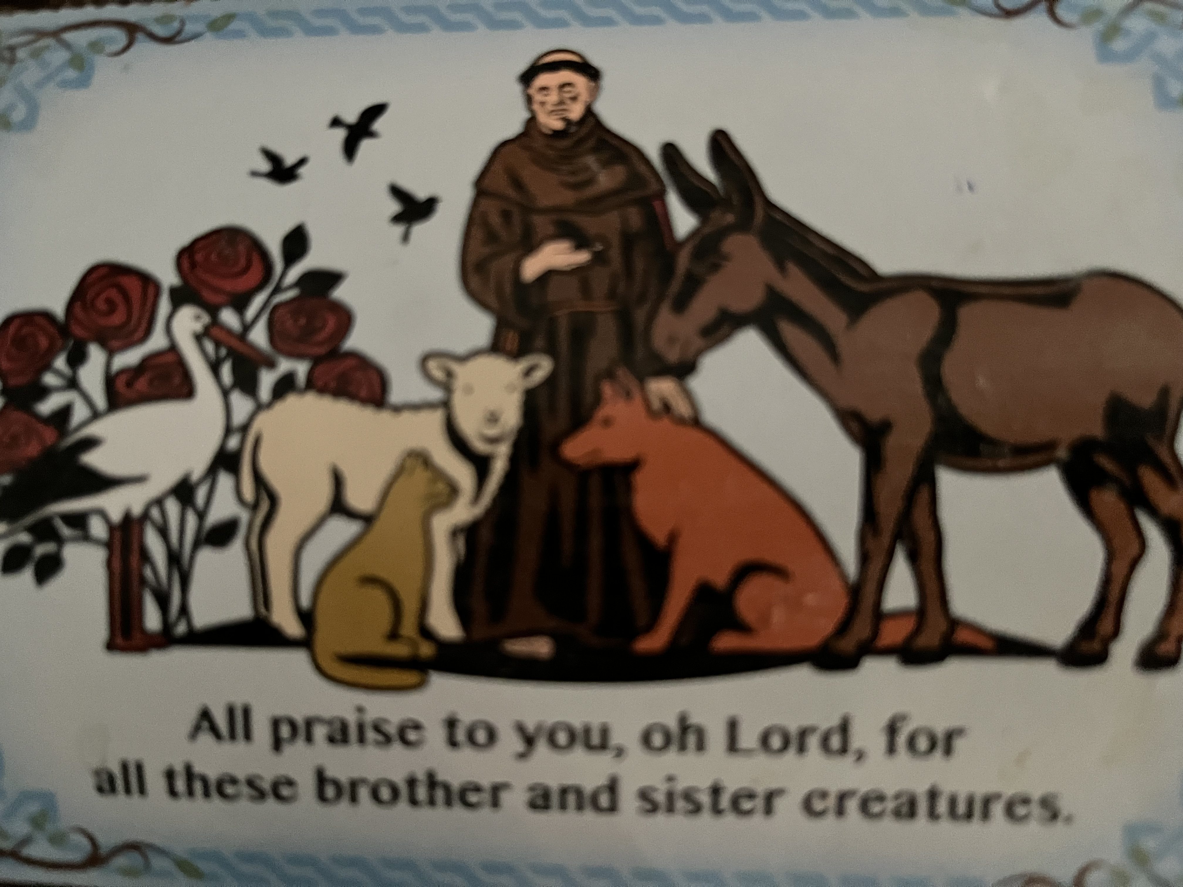 This week, on October 4th, 2023, the Church celebrated the life of St. Francis of Assisi known as the saint of the poor, all animals and the environment. A once very wealthy12th century man, he heard God’s voice telling him to rebuild the church and he became poor and developed an order of 5 thousand followers. He is known for loving and serving all of God’s creation and for Christ’s stigmata on his loving hands!