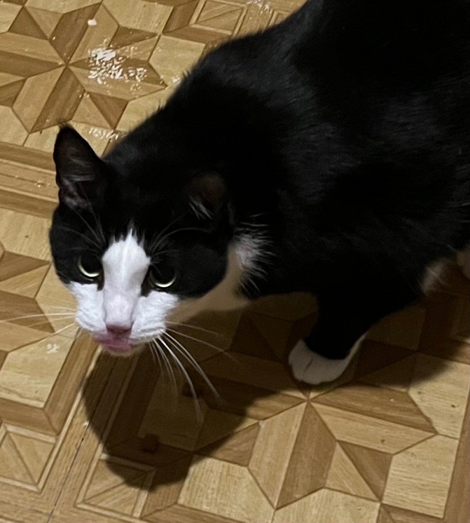 And below, Marco Polo, now 8, who was brought here as a kitten by his father, Big Benny, with his Mom and brother little Benny, is asking about dinner. The kittens were so tiny as the parents led them over a city block to my house every day to eat. Marco was adventurous exploring everything as he travelled here, hence his name. HIs father was sick and would not come in with them. A few months later he lived on our front porch and I cared for him there until he died of feline leukemia. It still amazes me that Benny found a home for his family before he succumbed to illness. Because his mother Bonnie remained frightened the two kittens took a long time to trust so could not be placed like the many kittens I have placed. But I am still hoping for a home for them.