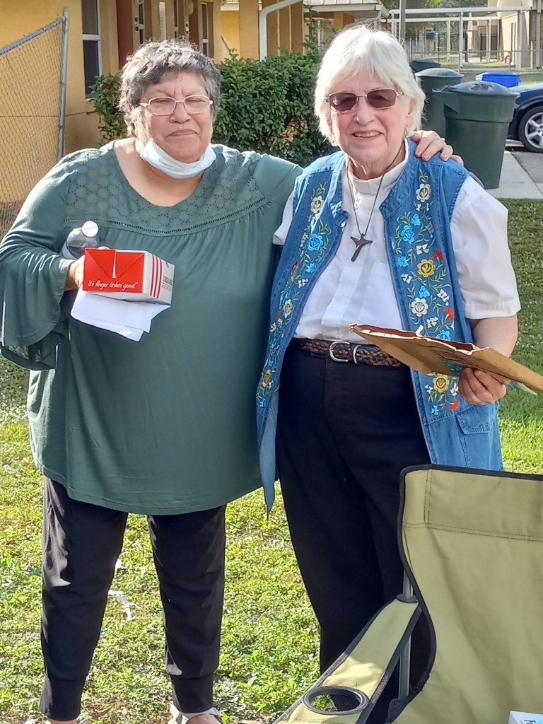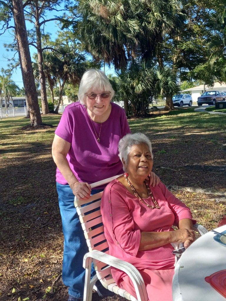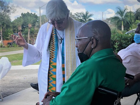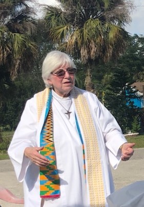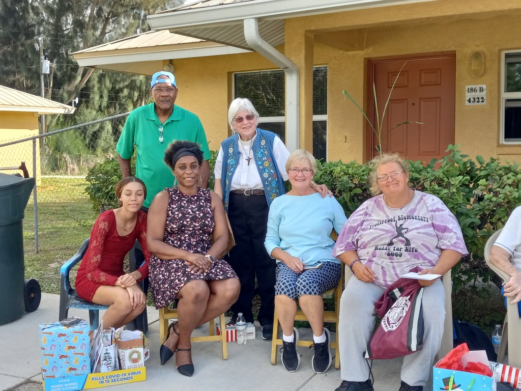 What a joy it was to celebrate Christmas with the Good Shepherd Inclusive Catholic Community in Fort Myers, Florida. This is a joyful and spirited worshipping community served by Roman Catholic Woman Priests and it has been active since 2007. It began as “Church in the Park” and developed into a community worshipping in a house in central Fort Myers bought to use as a church with living space for homeless individuals or families as well. That building was sold in 2017 as our founding co-Pastor, Judith Beaumont, RCWP was preparing to go home to our loving God and she became our guiding Angel on January 1, 2018. We then met in a condo in central Fort Myers but could not continue during the pandemic. At this time the two regular Pastors are Rev. Dr. Judith Lee ,RCWP and Rev. Marina Teresa Sanchez Mejia, RCWP. We also have guest Pastors to assist from time to time and wonderful church members. like Pearl Cudjoe, and Carol Schauf and Harry Gary and Kathy Roddy who assist in our gathering outside during this Covid pandemic. This Christmas gathering was held outside where several of our members live in East Fort Myers. And, on this day we also celebrated the December 19th 70th Birthday of our church elder, Mr. Harry Lee Peter Gary.