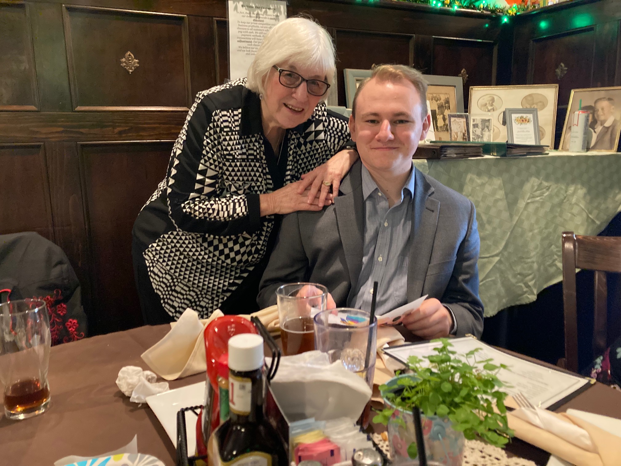 Janet’s daughter Lori is in the middle of these family members at the reataurantJanet’s brother Bobby Robinson and I with Lillian Dougherty Ebnerwith Kathy Knoppert,, Janet’s niece and Lillian and me. Janet’s grand nephew Travis Jay Knoppert was there paying his respects with many of the next two generations of our family