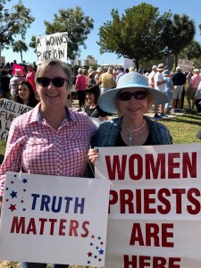 | Anna Davis, Bridget Mary Meehan and Russ Banner from Mary Mother of Jesus Inclusive Catholic Community at Women’s March in Sarasota, Florida on Jan, 21, 2017 |