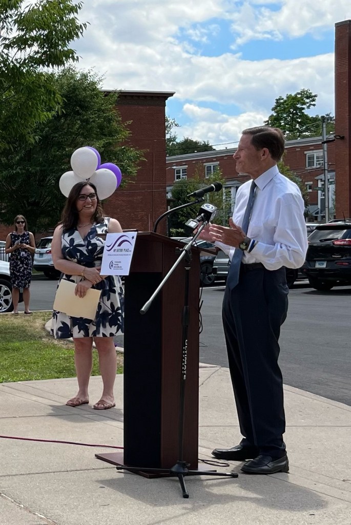 Then we went to the main event in Hartford Ct to honor Judy Beaumont who had a building named after her for her accomplishments in housing for the homeless and low income in Hartford. Beaumont Lofts is at 102 Pliny Street where she was the Executive Director of My Sisters Place for many years before moving to Fort Myers and continuing her work with the homeless here with me.