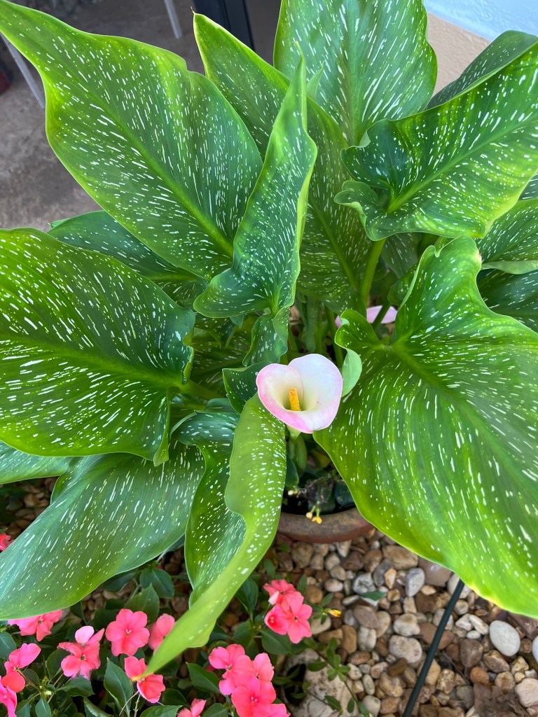 We are so blessed in South Florida to have flowers blooming year round. This morning my friend John Hancock sent me pictures he took of the flowers on his lanai in Naples. They are so beautiful that I just had to pass them on. And add some that are just outside of my window. Of these flowers, John said “…they are loving the cool nights and pleasant sunny days. Makes me happy to look at them.” And they lift my spirits and make me happy too so I am hoping they will bring you some joy as well. I believe that they are a hymn of grateful praise to our loving God.